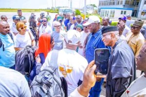 Prof Nentawe Yilwatda, the All Progressives Congress APC National Chairman and Minister of Humanitarian Affairs and Poverty Reduction, warmly received members of the Sharing Hope International Medical Team at the Yakubu Gowon Airport, Jos.