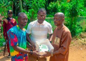 The Onirun of Irun Akoko, Oba Samuel Agboola, hailed Chairman Owolabi as a community leader with far-reaching humanitarian impact, saying ‘his impact projects has been felt across the community’. The community presented a cake to mark the joyous occasion .