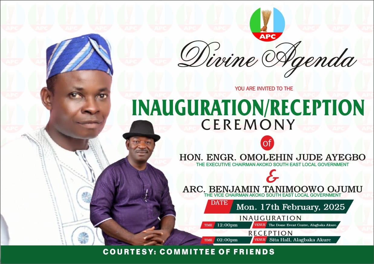 You are cordially invited to the Official Inauguration Ceremony of Hon. Ayegbo Omolehin Jude as the Executive Chairman of Akoko…