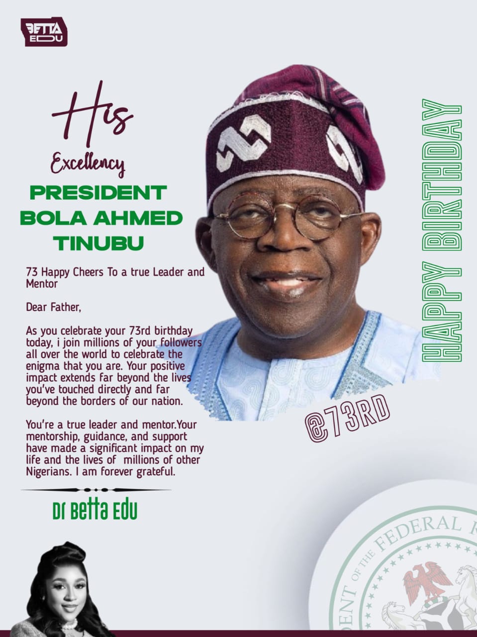 Birthday Message to President Bola Tinubu from Hon. Aminu Suleiman, Chairman of Federal College of Education, Keana, Nassarawa State, and…