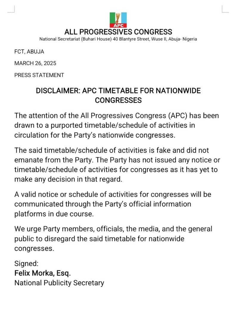 DISCLAIMER :APC TIMETABLE FOR NATIONWIDE CONGRESSES
