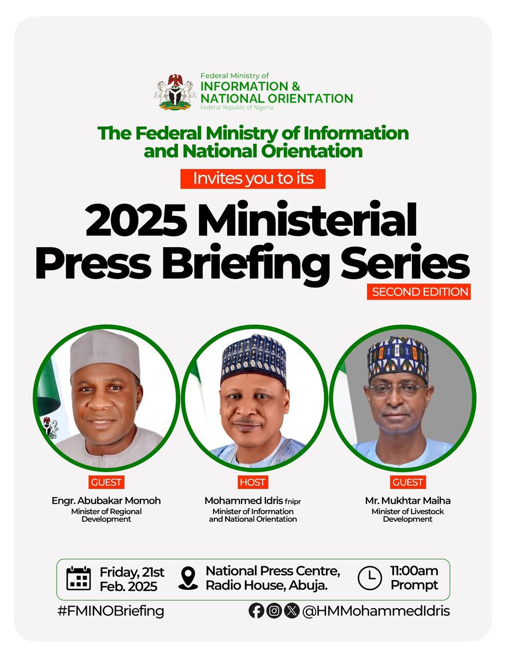 2025 Ministerial Press Briefing Series: Ministers of Livestock Development and Regional Development to Present Scorecards on Friday The Federal Ministry…