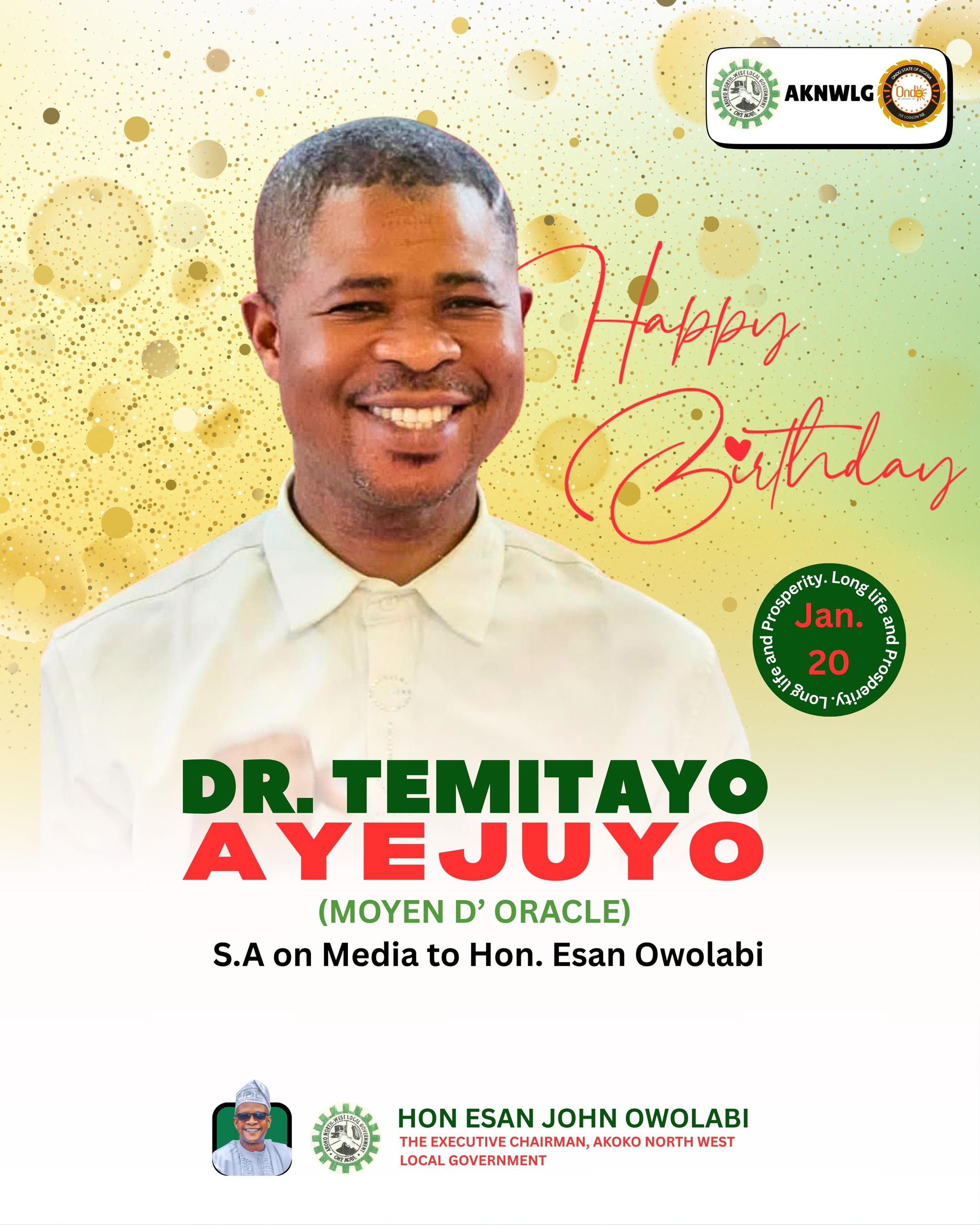 Chairman Owolabi Congratulates His Special Assistant on Media on Birthday Anniversary The Executive Chairman of Akoko Northwest Local Government Area,…