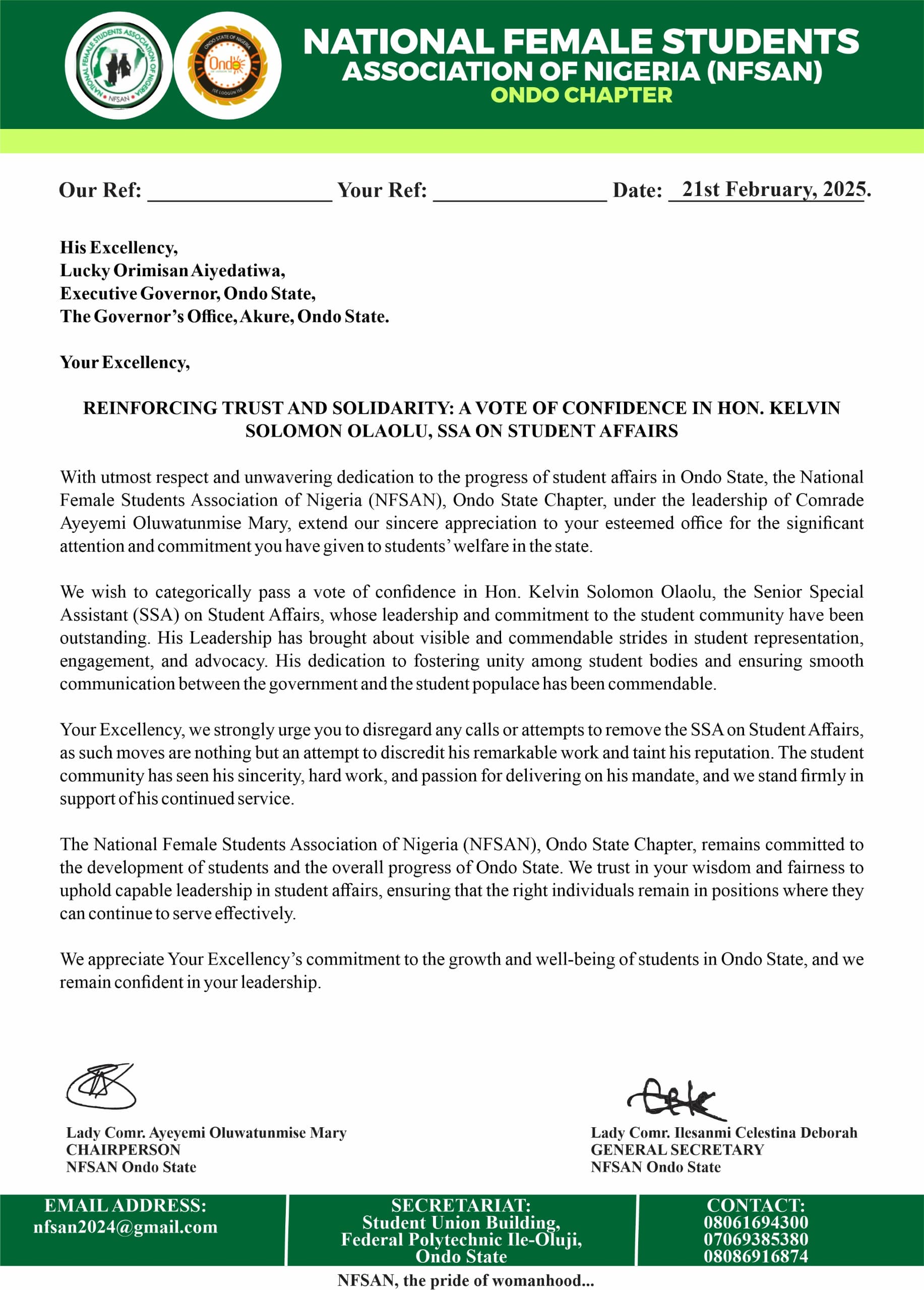 His Excellency, Lucky Orimisan Aiyedatiwa Executive Governor, Ondo State The Governor’s Office, Akure, Ondo State. Your Excellency, REINFORCING TRUST AND…