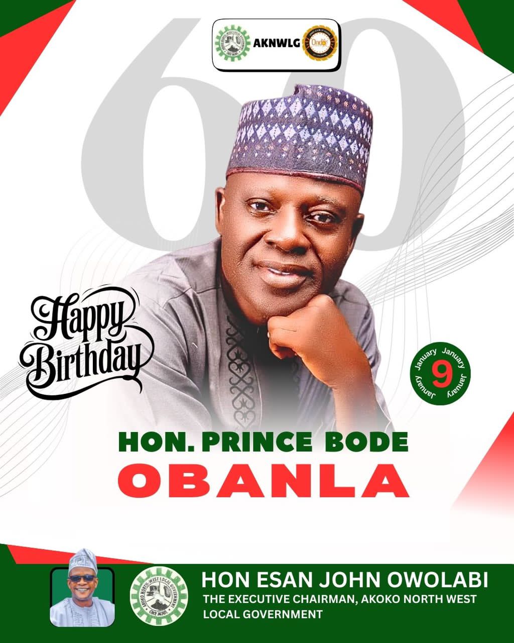 Chairman Owolabi congratulates Hon. Bode Obanla on his 60th birthday Hon. Esan Owolabi, Executive Chairman of Akoko Northwest Local Government…