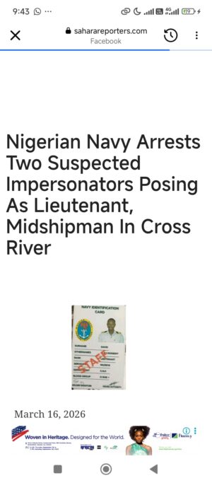 Nigerian Navy Arrests Two Suspected Impersonators Posing As Lieutenant, Midshipman In Cross River The suspects, identified as David Norbert Aleji…