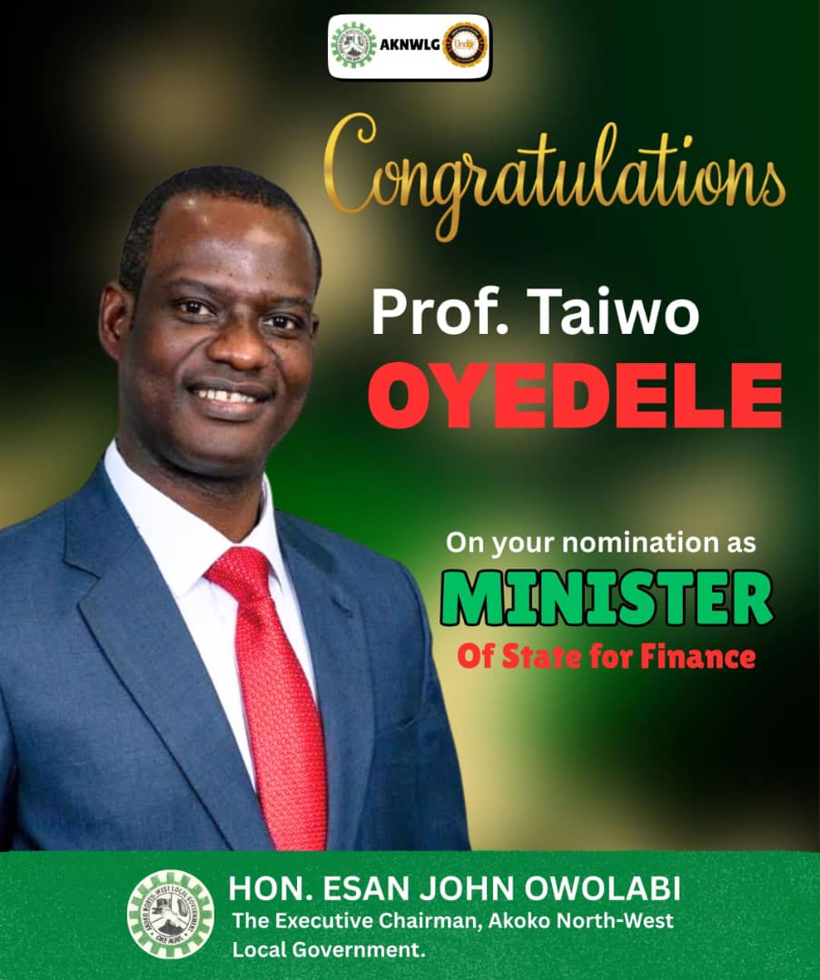 Press Statement The Executive Chairman of Akoko North West Local Government, Honourable Esan Owolabi, has warmly congratulated Professor Taiwo Oyedele…