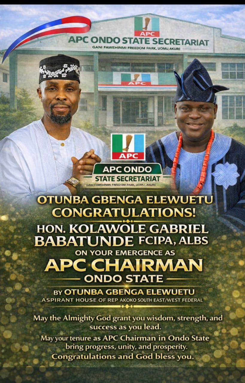 KOLAWOLE BABATUNDE: A GOAL GETTER Congratulations to Hon. Kolawole Babatunde on his well-deserved emergence as the Ondo State Chairman of…