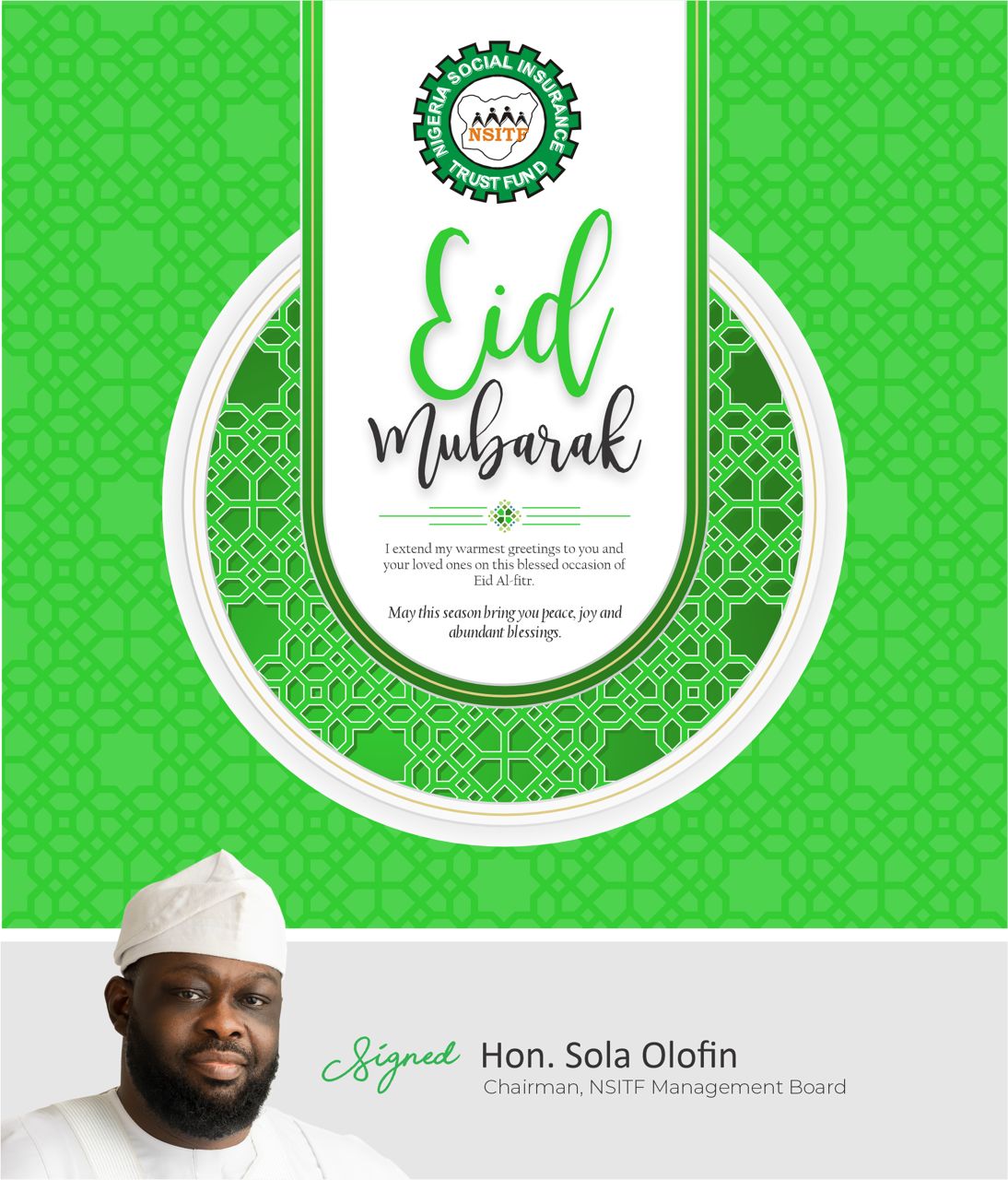 Hon. Sola Olofin Marks Eid-el-Fitr with Messages of Peace and Togetherness The Chairman of the Nigeria Social Insurance Trust Fund…
