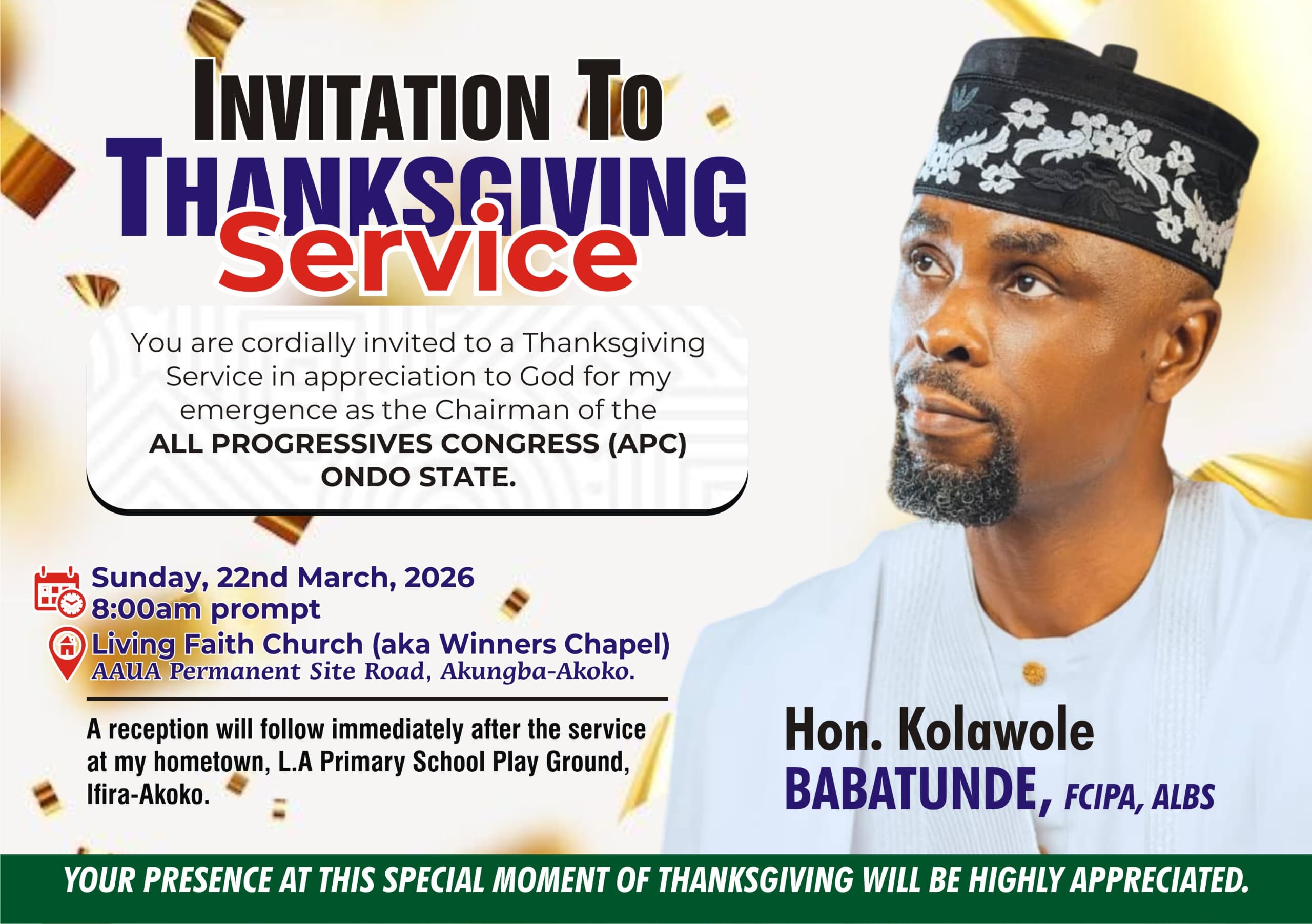 PRESS STATEMENT The Executive Chairman of Akoko North West Local Government has extended his warm congratulations to Professor Oyedele on…